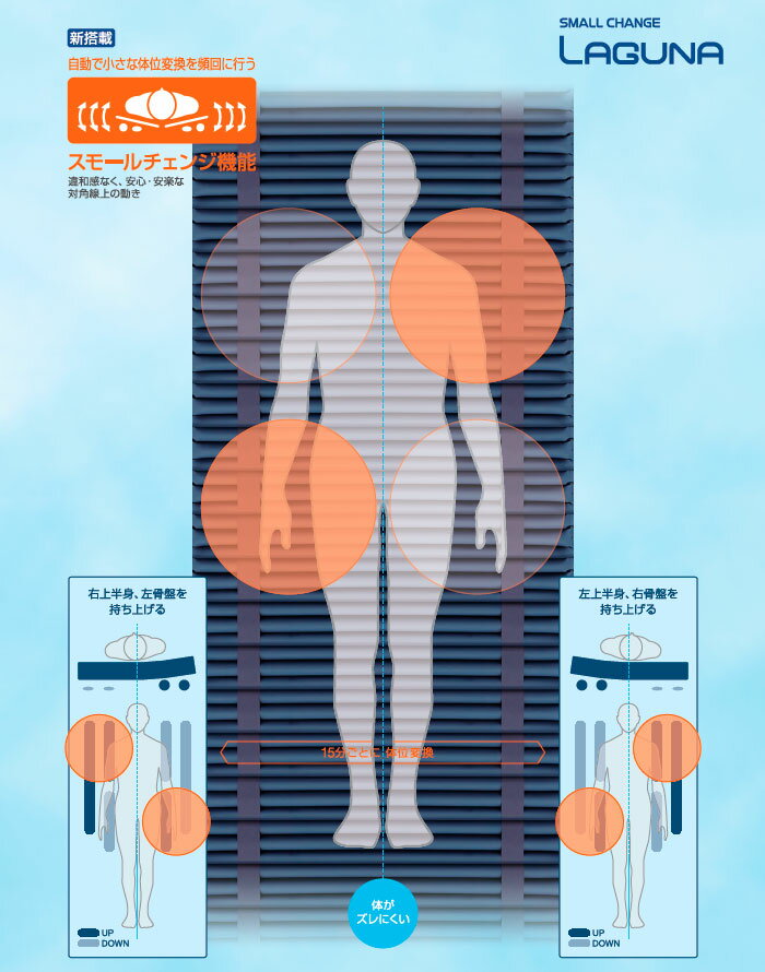 商品名 : 床ずれ防止 エアマットレス スモールチェンジ ラグーナ 840・900タイプ LAGUNA CR-700・CR-703・CR-705・CR-707 体位変換 褥瘡 ケープ