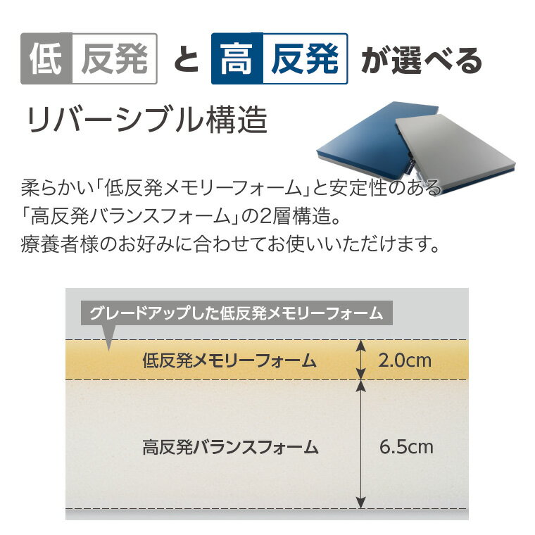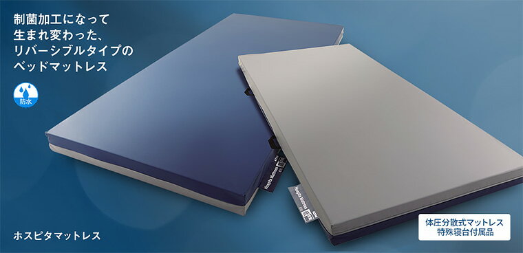 ●サイズ/幅83×長さ191×厚さ8.5cm●重さ/6.0kg●材質/マットレス:低反発ウレタンフォーム・高反発ウレタンフォーム、カバー:ポリウレタンフィルムラミネート加工布●生産国/日本●防水加工、制菌加工★別売替カバー有・幅広いケアのニーズに対応する、リバーシブル構造のベッドマットレス。・低反発と高反発が選べるリバーシブル構造(高反発面:紺色、低反発面:グレー)。・持ち運びに便利な軽量・ハンドル付。●配送に関して● ※大型商品の為、時間指定は出来ません。ご注文時に表示される時間指定をお選びいただいても、無効となりますことをご容赦下さいませ。【ケープ】ホスピタマットレス 830/CR-286 幅83cm 幅90cmはこちら ホスピタマットレス 900/CR-287 幅90cm 専用カバー ホスピタマットレス専用カバー(カバーのみ) CH-288 830用 その他「マットレス」はこちら ≫