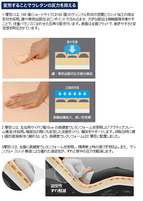 圧縮から変形へ発想を転換したディンプル形状です ケープ 反力軽減ウレタンフォームマットレス ディンプルマットレス830CR-540|床ずれ 予防 床ずれ リスク 中度 褥瘡 電動ベッド用 ベッド用 介護
