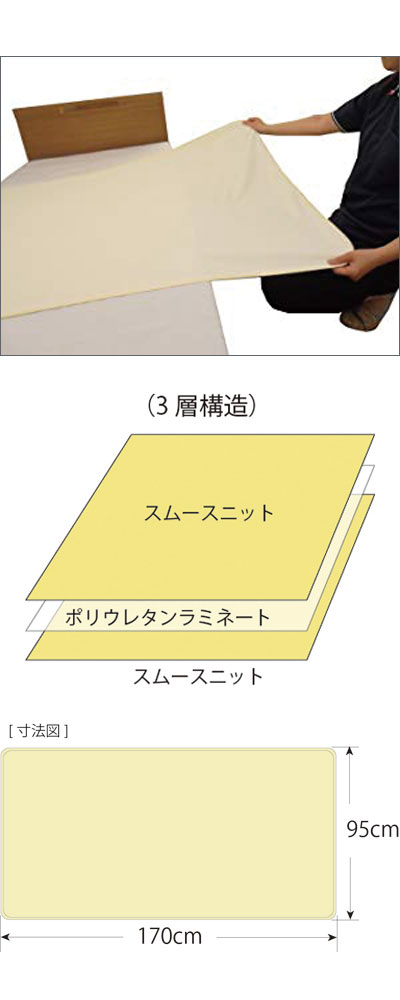 商品名 : 防水シーツ あんしん3層スムース防水シーツ 幅170×長さ95cm クリーム MT-7040 丸田シャツ │ リバーシブル 防水シーツ 巻き込みタイプ 高齢者 失禁対策 子ども おねしょ ベッド関連 寝具 介護用品