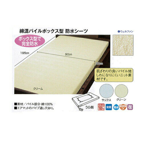 商品名 : 綿混パイル 防水BOXシーツ 9468 90×195×23cm ウェルファン (パイル地 ニット素材) 介護用品