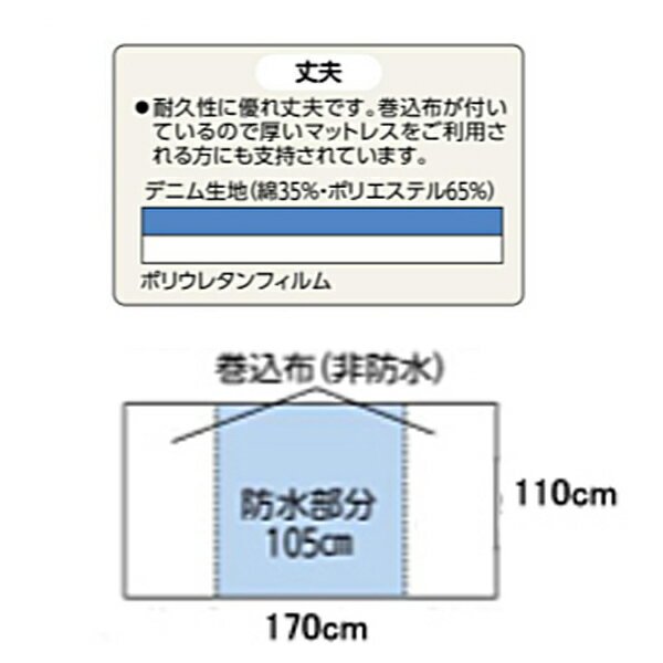 商品名 : 防水シーツ 介護 大人 おねしょ シングル デニム防水シーツ大判タイプ 9451 110X170cm ウェルファン (ベッド 介護 寝装具) 介護用品