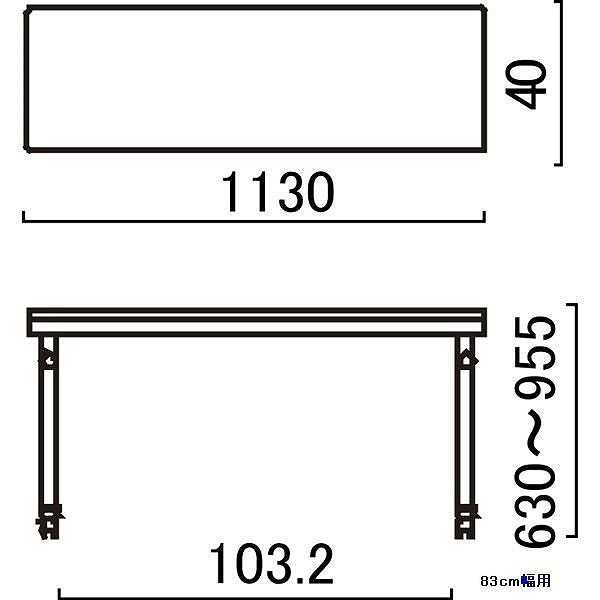 ・支柱のノブボルトを緩めて高さ調節ができます。 ・ベッドの上で食事や軽作業が行なえます。テーブルの縁は、優しい感触の軟質樹脂のエッジを設け、小物が落下しにくいように、テーブル面より少し高くなっています。 ・天板の高さは63〜95.5cmまで調節できます。高さを調節し、ノブボルトを締めこむと支柱に設けた位置あわせのガイドに従って天板が固定されます。 ・脚部には移動用のキャスターを設けています。 ※ベッドのポジション操作をするときには、テーブルをベッドから外してください。 ※ベッド(オプションを取り付けた状態)の総幅が103cmを超えると、本製品は利用できません。 ※使用工具スパナ(対辺13mm)×2をお客様でご用意して頂く必要がございます。 ●サイズ/幅113×奥行40×高さ63〜95.5cm、天板:幅113×40cm ●材質/天板:樹脂化粧板