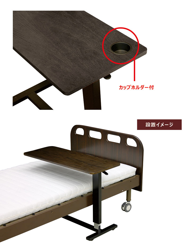 商品名 : 北欧 昇降式テーブル 昇降テーブル 幅95cm ベッドサイドテーブル 昇降式 サイドテーブル 高さ調節 無段階調節 キャスター付き ガス圧 コンパクト 木製 おしゃれ 北欧スタイル モダン カップホルダー ドリンクホルダー 老人 お祝い 長寿 敬老の日 介護 医療 介護用品 介護家具