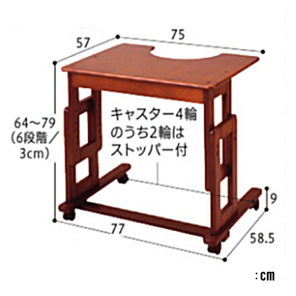 商品名 : (代引き不可) サポートテーブルB 高さ64〜79cm (6段階) キンタロー (介護 ベッドサイドテーブル サイドテーブル キャスター テーブル 木製 車椅子) 介護用品