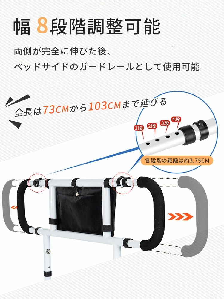 ベッド 起き上がり 手すり ベッドサイド手すり 幅73-103cm 幅8段階 高さ15段階 工事不要 敬老の日 父の日 母の日 プレゼント ベッド 立ち上がり 手すり 介護 幅8段階 高さ15段階 ベッドサイド 後付け 工事不要 耐荷重300kg 折り畳み収納 柵 補助 ベッド手すり バ