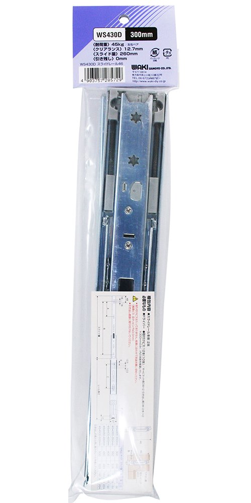 商品名 : WAKI ソフトクローズ スライドレール 46mm太幅 3段引き 300mm 2本入(ペア)