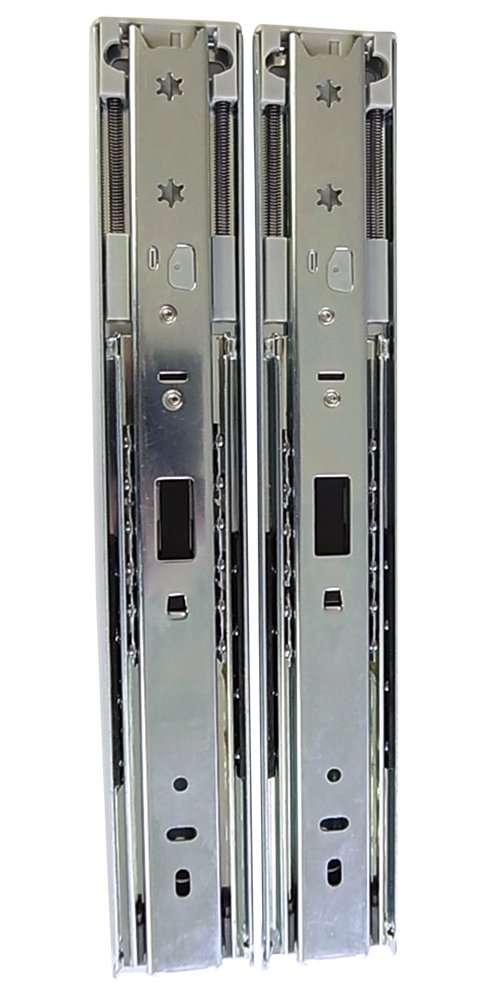 商品情報商品の説明説明 引き出しがゆっくりやさしく閉まるダンパー機能をプラス! ベアリングタイプ 片方向スライド、脱着可能主な仕様 材質:スチール(ユニクロメッキ仕上げ)br耐荷重:45kg(左右ペア)brクリアランス:12.7mmbrスライド量:260mmbr引き残し:0mmbr注意:取り付けビスは入っておりません。板厚に合わせて別途お買い求めください。(推奨ビス:皿タッピングφ3.0mm)br注意:引き出しの長さと同じ長さのレールを選んでください。br注意:引き出し底面に取り付けないでください