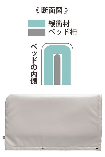 【商品説明】 ・ベッドサイドレールから腕や脚がはみ出るのを防ぐ緩衝材入りカバー。L字柵の固定部に取り付けられます。 ・柵に挟まれて起きる骨折事故や窒息事故を防ぎます。 ・緩衝材入りのため、ベッド柵に脚や腕をぶつけた時の衝撃を吸収します。 ・今まで対応できなかった可動式(介助バー)タイプのベッド柵に取り付け可能。 ・防汚・難燃・耐薬品素材で、アルコールや次亜塩素酸での拭き取りができ、感染対策の観点からも衛生的にご使用いただけます。 ・3ヶ所のボタンで簡単に着脱が可能です。 ※スイングする部分には取り付けられません。ベッド柵の固定されている部分への取り付けとなります。 ※取付可能なサイドレールについては、内寸をご参照ください 【仕 様】 ●サイズ/幅80×高さ48cm、内寸:幅75×高さ44×厚さ5cm ●材質/表地:ポリ塩化ビニール100%、中材:ナイロン74%・ポリエステル26% ●生産国/日本 ●防汚加工、難燃加工 ※サイドレールは別売です。