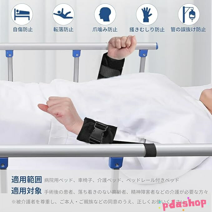 商品名 : 介護用抑制帯 拘束バンド 手足用ホルダー 拘束ベルト 認知症 引っ?き防止 掻きむしり 就寝時 フリーサイズ 通気軽量 自傷行為防止 手足の固定手袋