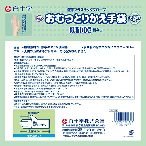 商品名 : サルバ 白十字 おむつとりかえ手袋 大きめ 100枚 パウダーフリー プラスチック手袋