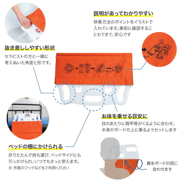 商品名 : タカノ 移乗ボード スライディングボード のせかえくんスライド TB-503 オレンジ (幅50.5×長さ125×厚さ1cm) │ 移乗用具 ベッド関連 高齢者 折り畳み コンパクト 介護用品 高齢者 病院 施設 在宅介護 ヘルパー 腰痛対策 移乗 移動 スライドボード お年寄り 老人 シニア
