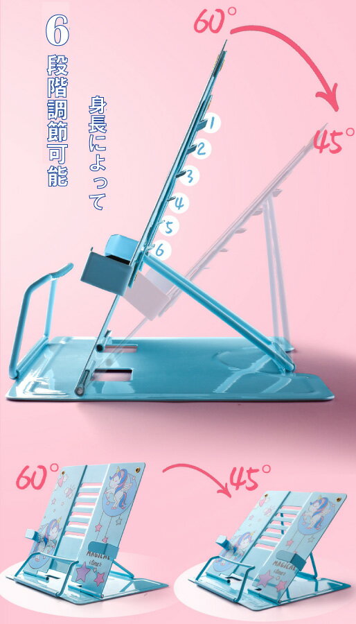 商品名 : 「★エントリーでP10倍」ユニコーン ピンク ブルー 2色 プレゼント 入学式 御祝い 可愛い 読書スタンド 本立て ブックスタンド book 角度 調整 フレーム 変形 送料無料