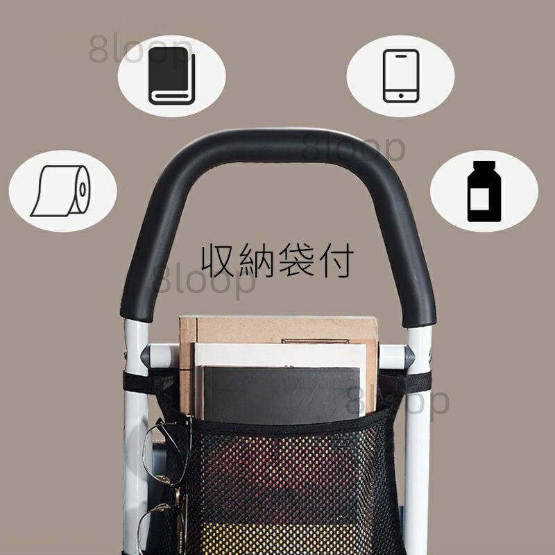 商品名 : ベッド用手すり ベッドガード 折り畳み収納 小物整理バッグ付 ベッドサイド手すり 高さ調整 高強度 4段階 転落防止 起き上がり 補助手すり コンパクト 大人 高齢者向け ズレ防止 工事不要