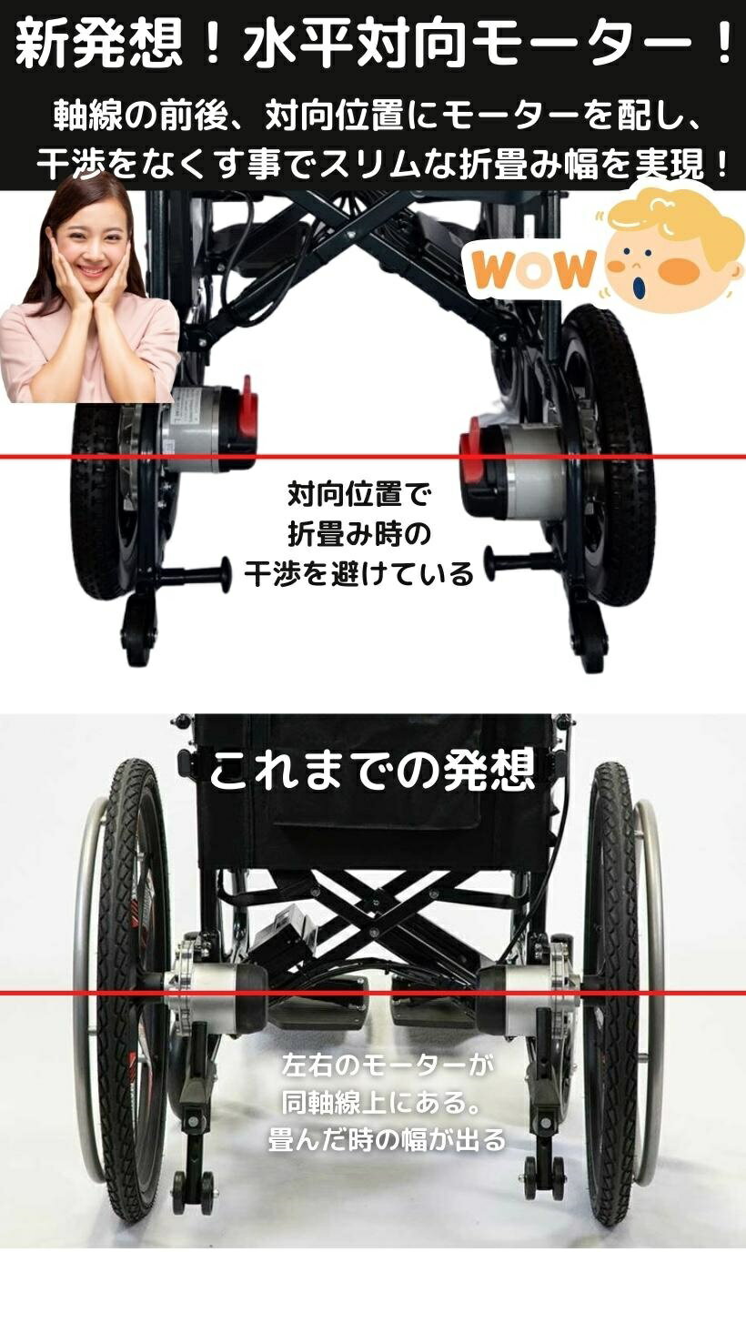 【製品仕様】 フレーム素材:アルミニウム合金 モーター:DC 200W ブラシレスモーター2基 バッテリー:24V 15AH(7.5AHX2基)(2022年8月モデルより従前の1.5倍!) 積載:100kg 走行距離:25km程度(路面、体重により幅) ブレーキ:インテリジェント電磁ブレーキ バッテリー寿命: 充電回数1000回以上 (3日に一度充電して約10年以上) 電池交換の可能性はほとんどありません。参考:リチウムを積んだ 日産リーフのバッテリー交換の目安は10年といわれています。 でも実際は交換の需要はなく、そのまま使い続ける方がほとんどです) 最高速度:6km / h フロントタイヤ:8インチ リアタイヤ:10インチ 登坂:13度 充電時間:6-8h 展開寸法:100x 90 x 60 CM 折畳寸法:59 x 69 x 21CM 肘掛けの幅:5cm 背もたれ高さ:39cm シートの深さ:42cm シート高さ:49cm シート幅:46cm 腕の位置:シートから22cm ペダル高さ:15cm 自重:20kg(バッテリ込) 駆動:リアドライブ・DCブラシレスモーター ホイール:PUソリッドタイヤ 旋回半径:120cm 【保証】 バッテリー:6か月 ジョイスティック、コントローラー、モーター:1年 フレーム:3年 布地、シート部、タイヤ部分は、消耗品扱いとなるので保証外 【寒冷地での電池効率】 ?20℃の極寒環境で電池効率は約30%低下します。寒冷地での使用では、 移動範囲を小さく見積もって運転して下さい。 【保証対応について】 万が一不具合が起きた場合は関東圏であれば弊店がお伺いして不具合品を 回収し、修理した後お届けします。遠方の方はボックスをお送りして 回収し、修理を行います。元ブランドと保証対応はまったく 同じですので、ご安心ください。 電気用品安全法(PSEマーク)に係る検査を自社で行って出荷しています。 PSE検査は法律で定められていますが、ほとんどの販売業者さんは、 委託工場に「丸投げ」しているのが現状です。 でも安全に係わることなので、弊社は100%出荷前の「自主検査」を実施して います。これには、初期不良防止の意味もあります。 お客様におかれましては安心して製品をお使い頂けます。介助者手押し/電動モード切替えのハイブリッドモデル! ダブル・リチウムイオン・バッテリー、ブラシレスモーター搭載。 2022年8月フルモデルチェンジ!ダブルバッテリーで走行距離アップ フレーム構造を見直し剛性アップ。ダブルバッテリ仕様に改良。 この仕様で20万円を切る価格!(今の円安相場ではあり得ないです!) 小型・軽量・高剛性、高耐久の4拍子揃っています! トランクに入れて運びたい。旅行に使いたい。 どこにでも持っていける、頼れる相棒! 店長より リチウムイオン電池搭載で、ブラシレスモーターのハイスペック仕様です。 このクラスででハイブリット仕様車は、日本ではこれだけだと思います。 日本で販売されている20万円前後・以下の電動車いすのほとんどは、 ブラシ付きモーターを使っています。ブラシ付きモーターは安価で、 制御システムも比較的シンプルで、安く組めるからです。 一方、ブラシレスモーター高くて高性能なモーターです。また制御系も高度になりコストがかかります。 モーター内部に機械的な接点が存在しないので、モーター寿命が驚異的に永く、 長期間メンテなしで使えるというメリットがあります。 ブラシレスを搭載したモデルは、これまで日本では、30万円オーバーの商品しか存在しませんでした。それを、弊店はこの価格でご提供します。 軽量モデルを探している方に本気でお勧めします。 同価格帯の他社製品は、ほとんどがブラシ付きモーター仕様です。 ブラシレスモーターを積んでいる当商品の方が、高性能で高寿命 です。当製品の場合、価格的にも、十分なメリットがあります。 安さの秘密は、下記をご参照ください。 弊店は国内出荷で出荷点検済み。アフターサービスも実施しています。 丸投げしない良心販売のお店です。 【安さの秘密】 電動車両の先進国、中国では欧米のいろいろなブランドのOEM製品を 請負い生産しています。そんな車いすを欧米のブランド会社から 購入すると、会社の利益が乗ってくるのでかなり高くなります。 でも、工場と交渉して直接仕入れをすることで、そのブランド製品を 安く仕入れすることが出来ます。(ただ、製造側の都合が優先の仕入れ になるため、時期によっては、ブランドの銘版やデザインがその都度 変わってくることがあります。) ポルタスは欧米で流通している良品を、フェアプラスで提供する、 エージェント志向のブランドです。 そのため商品のブランドやデザインが若干違ってくる場合がありますが、どうかご了承ください。 弊社はヨーロッパで販売されている優れた商品をポルタスブランドに リブランドして販売しています。製品には、ヨーロッパの会社の ブランドマークがついたままお届けになる場合があります。 どうかご了承頂きます様お願いします。 弊店もメーカーのポリシーに倣ってアフターサービスを実施しています。 電話による遠隔でのメンテサポートはもちろん、万が一不具合が起きた 場合は、代車を発送