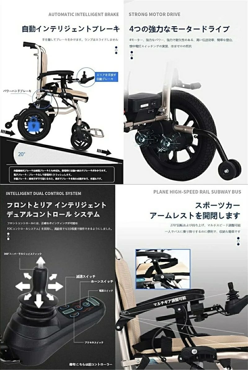 電動車いす/耐荷重100kg/バッテリー寿命20KM 軽量 車イス/スマート電磁ブレーキ/リリース360°ジョイスティック/自動ブレーキ/取り外し可能なデュアルバッテリー/フロントとリアのコントロールで 介護式、車いす 軽量 電動車椅子 車椅子 折り畳み 電動 コンパクト 高齢者障害者用アルミ合金折りたたみ 折りたたみ
