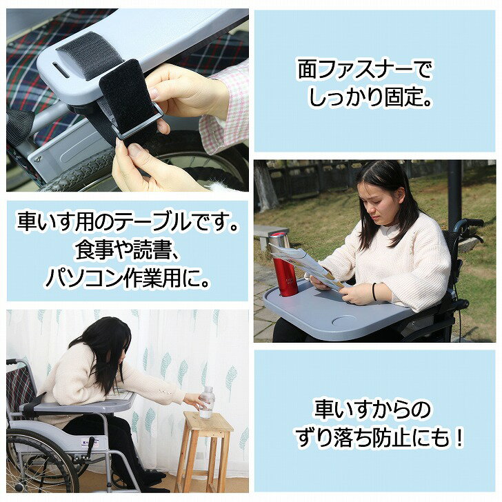 商品名 : 車いす用テーブル 車椅子用 アクセサリー 介護 介助 補助テーブル 簡単取り付け (グレー)