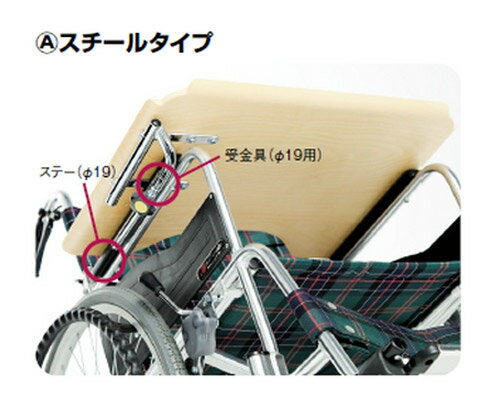 ■テーブルサイズ/59.6×45cm ・取り付け方法は前後式です。 ・開閉方法は、座って左側へ開閉いたします。 ・非課税の車椅子をご購入時に同時取り付けする場合、本商品も非課税となります。部品のみでのご購入の場合、課税対象となります。 ・車椅子と同時購入の場合、送料は無料となります。 ・現在16φ用樹脂タイプの受金具をごしようされている場合、φ19用(スチールタイプ)のステーは、取付けできませんので、ご注意ください。 【松永製作所】