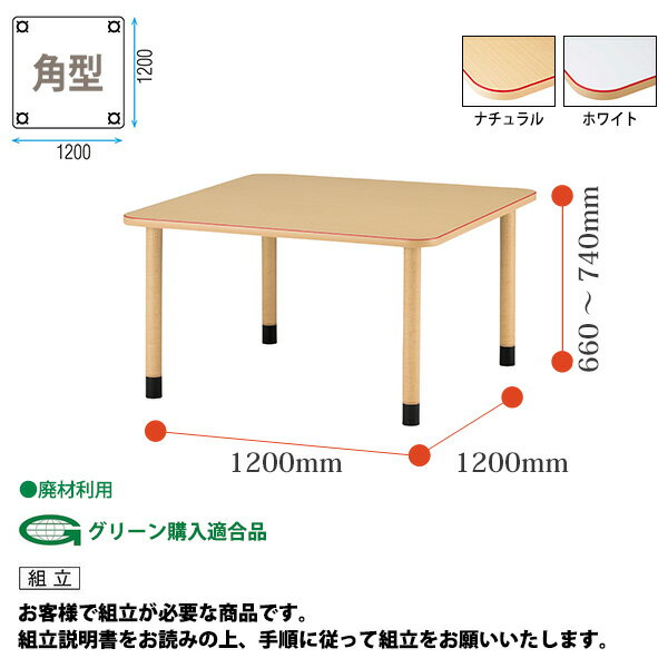 商品名 : 介護テーブル 高さ調節 昇降式 介護用テーブル 介護施設テーブル デイサービス 食堂テーブル MKV-1212 幅120x奥行120x高さ66〜74cm 角型 介護机 老人ホーム 車椅子