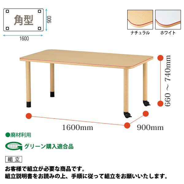 2026/01/25 更新▲詳細はこちら▲『掛け払い決済対応 (法人限定決済)・請求書払い』 ■■■商品の詳細について■■■ ■WEBカタログについて メーカー希望小売価格はメーカーカタログに基づいて掲載しています商品のカタログを PDFファイル ←クリック で表示できます。 ■送料について 法人様配送料無料ただし、北海道・沖縄・離島は別途送料がかかります。個人宅(法人名または屋号の記載が、お届け先名・備考欄の会社名に表記されていない場合)へのお届けには、別途配送料1台4,400円が発生いたしますので、予めご了承ください。北海道・沖縄・離島などの送料の見積もりにつきましては、買い物かご下の【商品についてのお問い合わせ】からお届け先名・郵便番号または住所(都道府県・市町村)・事業所・個人名をご記入の上、お問い合わせください。 ------------------------------------------------------------------ 大型家具の場合は、「1F軒先渡し」となります。 ドライバーが降ろす際に、お手伝いをお願いする場合があります。 ------------------------------------------------------------------ ■サイズ横幅(W)x奥行(D)X高さ(H) mm 幅1600x奥行900x高さ660-740mm ■重量 32.3kg ■共通仕様 ●天板:28mm厚メラミン化粧板(裏面バッカー)・フラッシュ構造・エラストマエッジ(赤ライン) ●脚部:Φ60.5スチールパイプ(木目シート貼り)・キャスター付 ●廃材利用 ●グリーン購入適合品 ●梱包:1脚入 ■タイプ 角型 キャスター脚 ■カラー ナチュラル/ホワイト ■組立について 宅配便での発送 お客様による組立 ■納期について おおよその納期は、約15-21日後の発送予定となります。 ◎日曜日・祝日は商品の到着はできません◎工場の混み具合で納期が変動します。 確実な納期のご確認は『商品についてのお問い合わせ』 または、ガジェット(TEL:0585-52-9658)までお問い合わせください。 『楽天市場店をみて連絡しました』と最初にお話しください。 同じシリーズのサイズ紹介 天板 サイズ(H660-740) アジャスター脚 キャスター脚 角型 W1800×D900 福祉用テーブルMKV-1890 福祉用テーブルMKV-1890C 角型 W1600×D900 福祉用テーブルMKV-1690 福祉用テーブルMKV-1690C 角型 W1200×D1200 福祉用テーブルMKV-1212 福祉用テーブルMKV-1212C 凹型 W1800×D1200 福祉用テーブルMKV-F1812 福祉用テーブルMKV-F1812C 凹型 W1600×D1200 福祉用テーブルMKV-F1612 福祉用テーブルMKV-F1612C 凹型 W1200×D1200 福祉用テーブルMKV-F1212 福祉用テーブルMKV-F1212C 丸型 Φ1200 福祉用テーブルMKV-1200 福祉用テーブルMKV-1200C チェアセット セット内容 品番 MKV-1690C 1台/FVM-5AL 4脚 4人用セット MKV-1690CSET 関連キーワード テーブル 机 デスク 病院 病院用テーブル介護用テーブル 介護施設用テーブル 介護 施設用テーブル 福祉施設テーブル 車椅子対応 上下昇降 高さ調節 キャスター付き 角型 組立式 TOKIO 藤沢工業 ガジェット オフィス家具 法人様配送料無料 激安 特価 快適 再販商品はこちら2026/1/12スタッキングテーブル E-TOY-1590K 58,916円2026/1/12ミーティングテーブル E-GK-1890QL 71,500円2026/1/12ミーティングテーブル 幅280×奥行90×高さ305,448円ショップトップ > カテゴリトップ > オフィス家具 > 介護家具 > 介護用テーブル・病院用テーブル > 天板サイズで選ぶ > W1600xD900mm 2026/01/25 更新類似商品はこちら介護テーブル 高さ調節 昇降式 介護用テーブル79,805円介護テーブル 高さ調節 昇降式 介護用テーブル80,025円介護テーブル 高さ調節 昇降式 介護用テーブル96,965円