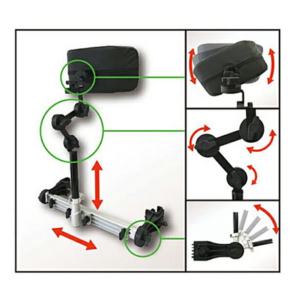 ・ヘッド枕全方向可動。背パイプに取り付けるだけ。 ●サイズ/ 全幅41〜58×奥行15×最大全高51(枕部分込み)cm 枕:幅26×高さ13cm ●重さ/約1.95kg ●材質/鉄、アルミ、ステンレス、ウレタン、合成樹脂 ●生産国/台湾 ●メーカー品番/MB01201R ●JANコード/4562322750644 ●メーカー名/ユーキ・トレーディング