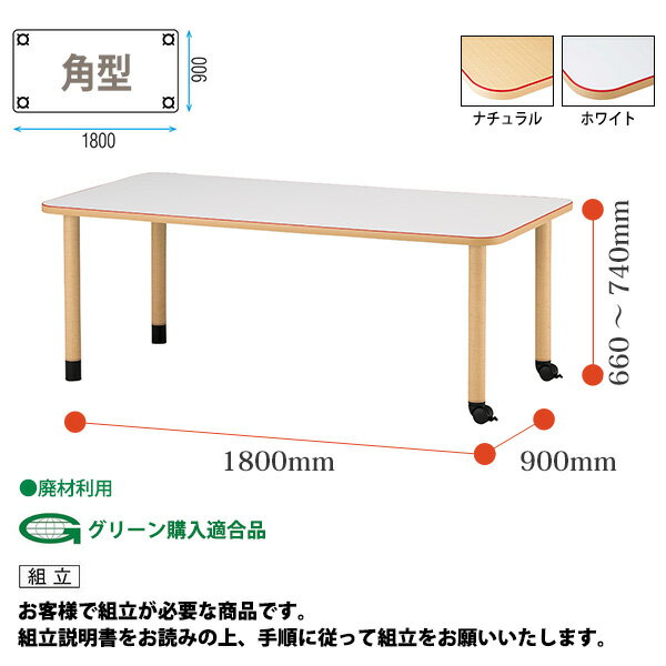 商品名 : 介護テーブル 高さ調節 昇降式 介護用テーブル キャスター付き 介護施設テーブル デイサービス 食堂テーブル MKV-1890C 幅180x奥行90x高さ66〜74cm 角型 福祉施設 介護机 老人ホーム 車椅子