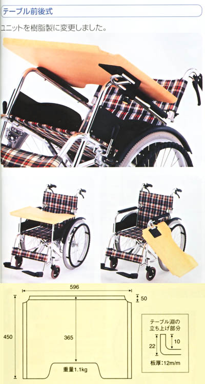 ■テーブルサイズ/59.6×45cm ・取り付け方法は前後式です。 ・開閉方法は、座って左側へ開閉いたします。 ・非課税の車椅子をご購入時に同時取り付けする場合、本商品も非課税となります。部品のみでのご購入の場合、課税対象となります。 ・車椅子と同時購入の場合、送料は無料となります。 ・現在16φ用樹脂タイプの受金具をごしようされている場合、φ19用(スチールタイプ)のステーは、取付けできませんので、ご注意ください。 【松永製作所】