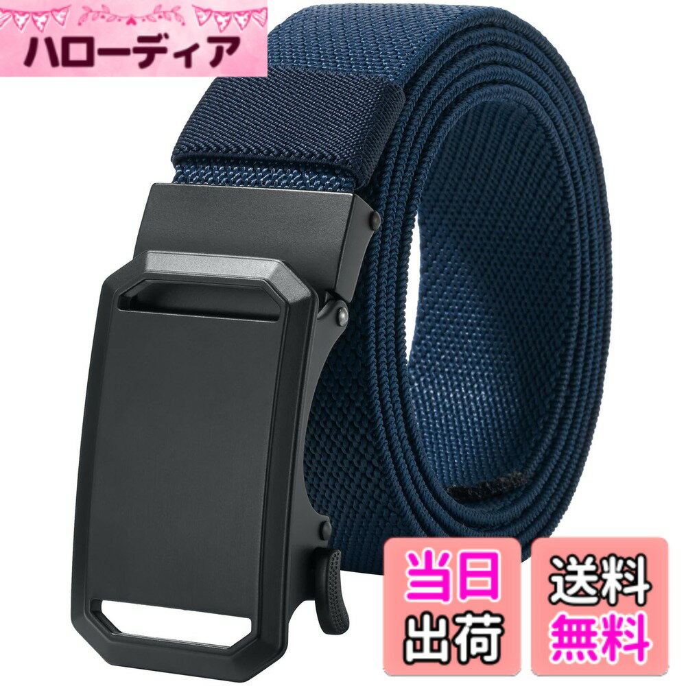 [LionVII] ベルト メンズ 伸縮 - オートロック式 ナイロンベルト 作業 スポーツ 登山 ゴルフ - アウトドア ベルト 伸びる 穴なし 無段階調節 合金製の自動バックル (ネイビーブルー)