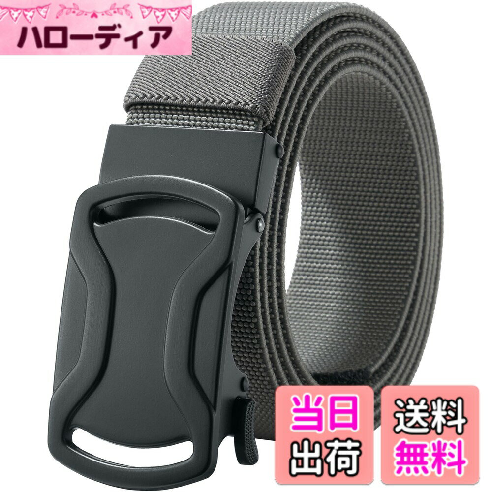 [LionVII] ベルト メンズ 伸縮 - オートロック式 ナイロンベルト 作業 スポーツ 登山 ゴルフ - アウトドア ベルト 伸びる 穴なし 無段階調節 合金製の自動バックル (グレー)
