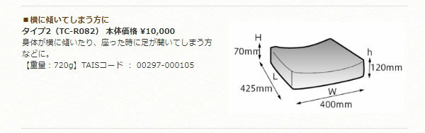 体圧分散性が高く、座り心地も快適な、多面体構造。 長い間座っていてもお尻が痛くなりにくい タイプ2・・横に傾いてしまう方に。身体が横に頷いたり、座った時に足が開いてしまう方などに。 ・車いす使用時の悩みを解決、体圧分散&姿勢を保持するお助けクッション。新しくなりました! より快適になりました。 ・柔らかいウレタンと硬いウレタンからなる多面体構造のタカノのクッションは、体圧分散性が良く、長時間でも快適にお座りいただけます。 ・高い体圧分散力の特殊構造とズレ・ムレにくい生地。軽量なのも高ポイント! ・生地裏面に防水加工、表は通気性に優れています。 ・特殊ウレタンフォーム多面体構造。 ・カバー付。 ・体圧分散力No.1。 ※画面上と実物では多少色具合が異なって見える場合もございます。ご了承ください。 ※カバーは洗濯機で水洗いすることができます。(本体のウレタンフォームは水洗いできませんので、ご注意ください。) ●サイズ/幅40×奥行42.5×厚さ7cm(高部12cm) ●重さ/720g ●材質/特殊ウレタンフォーム、ポリエステル ●品番/TC-R082 ●JANコード/ブラック:4523725004444 レッド:4523725004161 ブルー:4523725004093 ●生産国/日本 ●メーカー/タカノ 【検索関連キーワード】 健康用品/歩行関連用品/介護用品/敬老の日プレゼント/母の日プレゼント/父の日プレゼント/御祝いプレゼン ト/古希/喜寿/傘寿/米寿/贈り物/健康グッズ/お買い物グッズ/リハビリグ/おしゃれ/横押し/父の日/母の日/体圧分散/座布団 /長時間/車椅子用クッション/体圧分散力/おしり/マット/座り心地/褥そう/骨盤/座位/