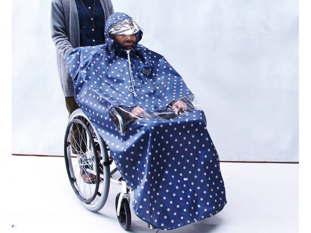 特徴 車椅子に座ったまま被る事ができるレインポンチョです。 仕様 色:ブルー 素材:表地/ポリエステル(PUコーティング)、透明窓/PVC フリーサイズ 男女兼用 重量:約800g