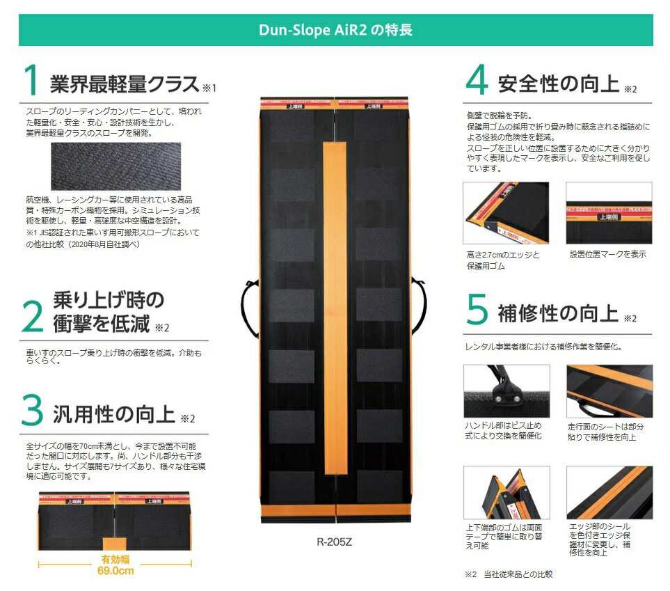 商品名 : 軽量 車いすスロープ 折りたたみ 玄関 階段 段差 後付け ダンスロープエアー2 R-165Z 長さ165cm 幅69cm ダンロップホームプロダクツ 介護 屋内 屋外