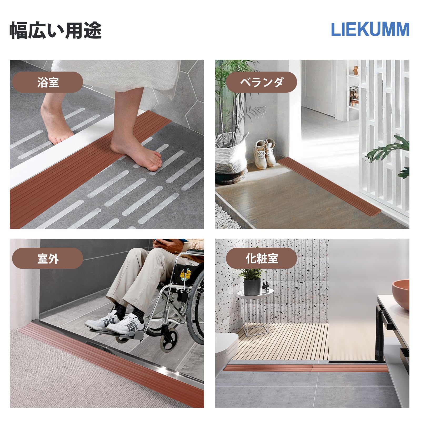 商品名 : LIEKUMM 段差スロープ 高さ1.5cm*幅90.5cm 段差解消スロープ 敷居スロープ 清掃ロボット用 室内外適用 段差解消 PVC材質 耐荷重800kg 柔軟静音 赤茶色