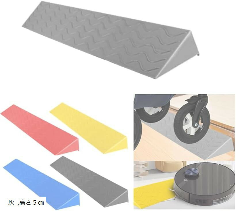 段差解消 スロープ 室内用 屋外 軽量 プラスチック製 簡単加工 車椅子 (灰, 高さ5cm)