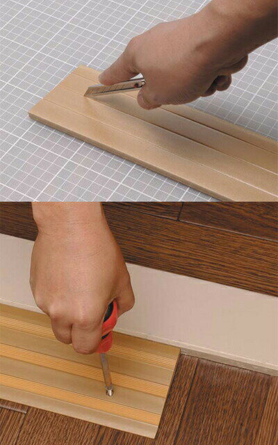 ●サイズ/長さ80×奥行10cm●材質/本体ベース:ABS樹脂、すべり止め部分:軟質ウレタン、調節プレート:ポリスチレン樹脂裏面両面テープ付●対応段差/1.2〜3.4cm●生産国/日本●付属品/専用調節プレート2枚、蓄光シール、取付ネジ※【WB4207】に【WB4208】を追加すると、対応段差3.5〜4.4cmとなります。・これ1つで1.2〜3.4cmの段差解消を現場で1mm単位で微調整できます。・スリット付なのでカッターでカンタンにカット。・表面にすべり止め加工仕様、夜間でも安心、蓄光シール付。・取付け方法は、付属の両面テープ、ビス止め兼用。(ビス付)【フジホーム】