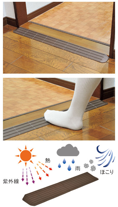 商品の仕様 ●サイズ/幅76×奥行3×高さ1cm ●材質/特殊エラストマー ●生産国/日本 商品の説明 ・小さな段差による歩行時のつまずき防止や、車いす走行時の負担を軽減するための低段差スロープ。 ・耐久性の高い特殊なエラストマー素材により、屋外から屋内まで広範囲に使用できます。