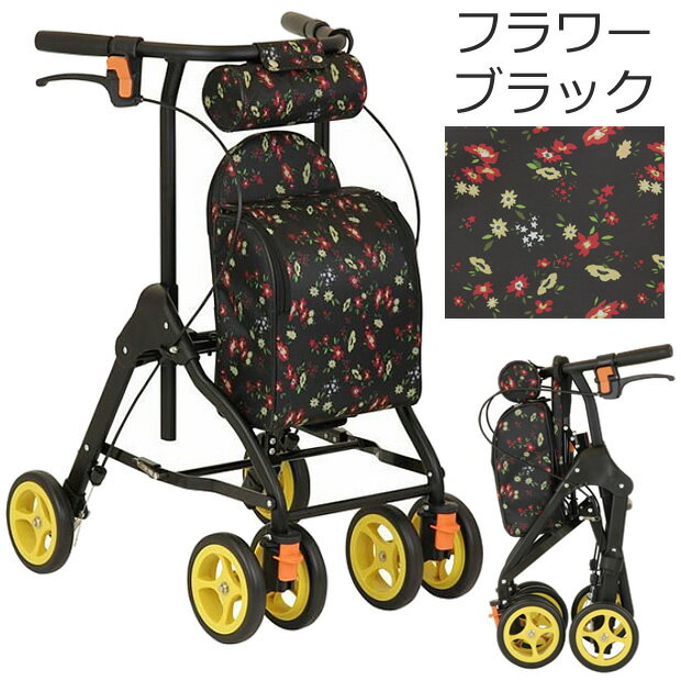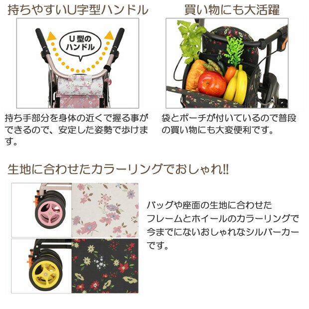 商品名 : シルバーカー ラウンディ フラワー(花柄) 幸和製作所 SIMD03-BK SIMD03-PK 手押し車 老人用 高齢者 押し車 おしゃれ シルバーカート シニアカート 買い物カート ショッピングカート プレゼント ギフト 介護