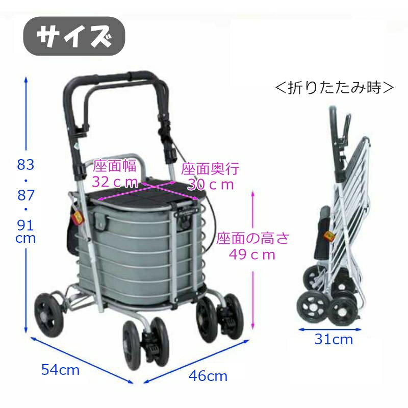 商品名 : キャンペーン価格!座れる 大容量 軽量 折り畳み シルバーカート シルバーカー ショッピングカート ワゴン 杖 杖置き 買い物 押し車 高さ調節 軽い プレゼント 保冷 保温