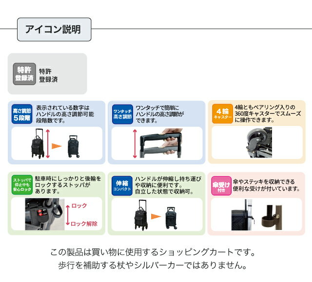 説明 大きな車輪の4輪360°キャスターで楽々操作♪ 音も静かでとってもスムーズに動きます! バックは生ものや冷凍食品などのお買い物に大変便利な保冷バック仕様です! サイズ 使用時サイズ:H約68〜84×W23.5×D30.5(cm) 収納時サイズ:H約59×W23.5×D30.5(cm) ハンドル高さ:約68〜84cm 高さ調節:5段階(ピッチサイズ 約4cm) バッグサイズ:約H37×W19×D29(cm)(外寸) バッグ耐荷重:8Kg 重量:約2.5kg タイヤ直径 前輪:約10cm 後輪:約10cm 材質 ●材質 本体:アルミ タイヤ:EVA(硬質発泡車輪) ホイル:PP ●バッグ材質 表生地/ビニールレザー 中綿/ポリエステルファイバー 保冷材/発泡ポリエチレン 裏生地 ナイロン 備考 お買い物時は、ショッピングカートとして、お役立ていただけます。 この製品は、リハビリテーション用ではありません。 万が一在庫がない場合は、追加入荷までお待ち頂く場合もございます。その際は、当店よりご連絡させて頂きますので予めご了承下さい。 離島、一部地域は別途送料がかかる場合がございます。 ご注文時には、足されておりませんが、後程、別途送料を足した金額を当店よりご連絡致します。 ご了承ください。 ☆シルバーカー色々取り揃えています ☆その他の島製作所のシルバーカー ☆その他の幸和製作所のシルバーカー ☆その他の須恵廣工業のシルバーカー ☆その他の象印ベビーのシルバーカーレインカバーはご一緒にいかがでしょうか? ★対応商品はこちら↓ メロディスムーズ・メロディスムーズST用 レインカバー【単品】 ≫シルバーカー 一覧はこちら! ▼ シルバーカーのタイプ別で探す!▼ ≫スタンダードタイプ ≫ミドルカータイプ(中型) ≫コンパクトカータイプ(軽量) ≫アルミカー ≫レインカバー付き ≫座れるタイプ ≫前輪3WAY スリーウェイ ≫前輪2WAY ツーウェイ ≫買い物かご受け有り ≫大容量 ≫男性用シルバーカー ≫サイドカー 一覧はこちら! ▼ サイドカーのタイプ別で探す!▼ ≫お買い物用 ≫旅行用 ≫360度回転キャスター ≫2WAYキャスター ≫3WAYキャスター ≫レインカバー付き ≫ステッキ 一覧はこちら! ▼ ステッキのタイプ別で探す!▼ ≫一本杖 ≫四点杖 ≫折りたたみ式杖 ▼ その他のおすすめ商品 ▼ ≫リクライニングチェア ≫手すり ≫歩行器・歩行車 ≫酸素ボンベカー