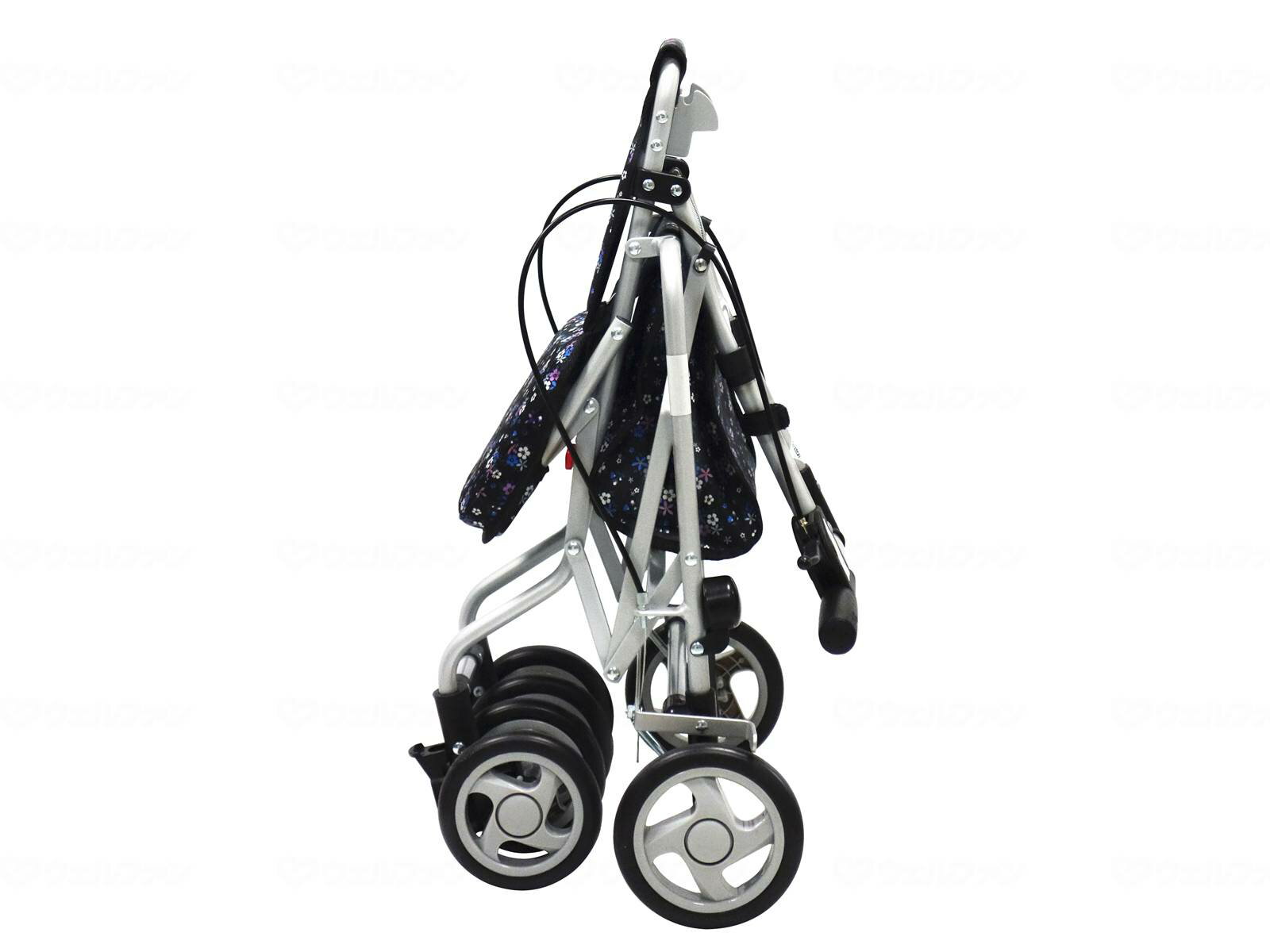 サイズ・重量 重量約4.5kg コメント ○両手2WAYブレーキ ブレーキレバーを握るとブレーキ、押し下げると駐車用ストッパの便利な手元2WAYブレーキシステム ○高さ調節3段階(約4cmピッチ) ハンドル高86.5〜94.5cmで慎重に合わせて使いやすい ○コンパクトに折りたたみ ワンタッチでハンドル部から折りたためる楽々タイプ ○2WAY前輪キャスター 前輪キャスター付(固定・120度)で方向転換もスムーズ 材質・原材料 材質 ○本体:アルミ(粉体塗装) ○タイヤ:EVA ○ホイル:PP ○バッグ:ポリエステル 規格詳細 ○使用時サイズ:約H86.5〜94.5(3段階 約4cmピッチ)×W43×D53.5cm ○収納時サイズ:約H68×W43×D35cm ○ハンドル高:約86.5〜94.5cm ○座面高:約46cm ○座面サイズ:約W25×D18cm ○タイヤ直径:(前輪)約13cm、(後輪)約14.5cm ○バッグ載荷重:2kg ○バッグサイズ:約H24×W25×D13cm(外寸) ○最大使用者体重:80kgサイズ・重量 重量約4.5kg コメント ○両手2WAYブレーキ ブレーキレバーを握るとブレーキ、押し下げると駐車用ストッパの便利な手元2WAYブレーキシステム ○高さ調節3段階(約4cmピッチ) ハンドル高86.5〜94.5cmで慎重に合わせて使いやすい ○コンパクトに折りたたみ ワンタッチでハンドル部から折りたためる楽々タイプ ○2WAY前輪キャスター 前輪キャスター付(固定・120度)で方向転換もスムーズ 材質・原材料 材質 ○本体:アルミ(粉体塗装) ○タイヤ:EVA ○ホイル:PP ○バッグ:ポリエステル 規格詳細 ○使用時サイズ:約H86.5〜94.5(3段階 約4cmピッチ)×W43×D53.5cm ○収納時サイズ:約H68×W43×D35cm ○ハンドル高:約86.5〜94.5cm ○座面高:約46cm ○座面サイズ:約W25×D18cm ○タイヤ直径:(前輪)約13cm、(後輪)約14.5cm ○バッグ載荷重:2kg ○バッグサイズ:約H24×W25×D13cm(外寸) ○最大使用者体重:80kg