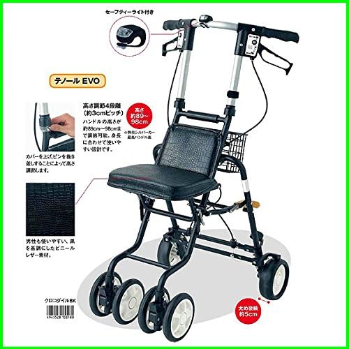 商品名 : シルバーカー テノールEVO クロコダイルBK 島製作所 男性向けモデル 黒レザー調 軽量 座れる 座面付き U字ハンドル 2WAYブレーキ 手元ストッパー ライト付き 2WAYキャスター 折りたたみ自立式 傘・杖受け付 散歩 買い物 通院 病院 旅行 プレゼント 敬老の日