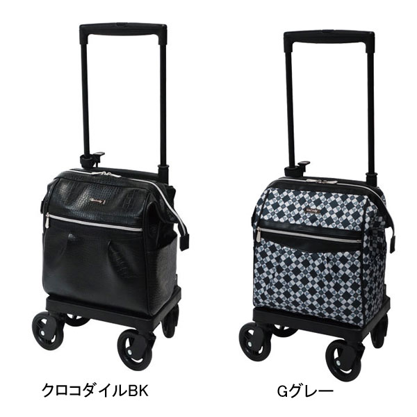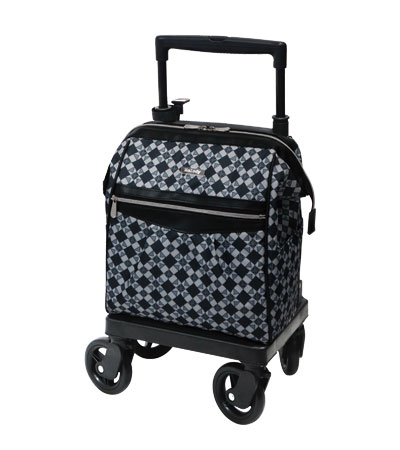 ・4輪360度キャスターでスムーズな方向転換。 ・バッグは口金入りバッグ口が大きく開きやすい。 ・便利な駐車用ストッパー。 ・保冷仕様のバッグ。 ●サイズ/ 幅23.5×奥行34×高さ68〜84(5段階/4cm)cm 折りたたみ時:幅23.5×奥行34×高さ65cm ●車輪サイズ/約前輪10×後輪10cm ●重さ/Gグレー:約2.4kg、クロコダイルBK:約2.8kg ●バッグ容量/11L ●積載荷重/6kg ●材質/ 表生地:(Gグレー)ポリエステル・(クロコダイルBK)ビニールレザー 保温保冷材:EPE 裏生地:ナイロン ●生産国/ベトナム ●標準機能/ハンドル高さ調整、1WAYキャスター(360°)、保冷バッグ、杖・傘置き付 ●カラー/クロコダイルBK Gグレー ●JANコード/ クロコダイルBK:4945528351288 Gグレー:4945528351295 ●メーカー名/島製作所