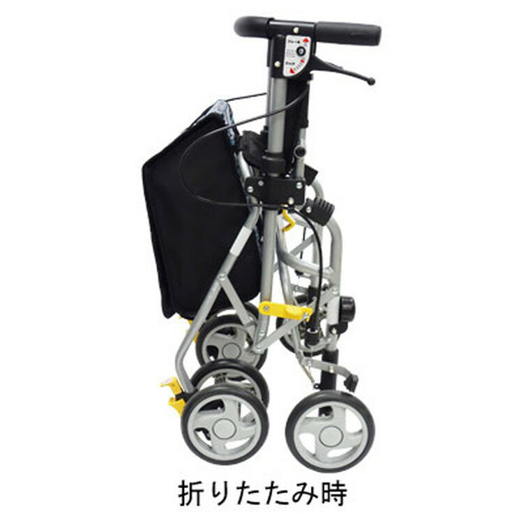 歩行関連 歩行器(キャスター付) ・小柄な方でも使いやすいスリムな歩行車。・狭い場所も小回りがきき、操作しやすい。・使用時、収納時もコンパクトな横幅で小回りがきいて扱いやすい。・使いやすいバッグ。荷物の出し入れがしやすい仕様。フタ部分にはチャック式のポケットがあり、小物が入れられます。 ●サイズ/幅48×奥行60×高さ77.5〜86.5(4段階/3cm)cm、折りたたみ時:奥行33×高さ69cm、座面:幅31×奥行26cm、座面高:44cm、ハンドル内幅:約37cm●車輪サイズ/前輪14.5×後輪14.5cm●重さ/4.9kg●材質/フレーム:アルミ、バッグ:ポリエステル●最大使用者体重/75kg●バッグ容量/8L●積載荷重/5kg●標準機能/折りたたみ、手元ブレーキ、駐車ブレーキ、座面、杖・傘立て●生産国/台湾●ケース入数/2歩行関連 歩行器(キャスター付) ・小柄な方でも使いやすいスリムな歩行車。・狭い場所も小回りがきき、操作しやすい。・使用時、収納時もコンパクトな横幅で小回りがきいて扱いやすい。・使いやすいバッグ。荷物の出し入れがしやすい仕様。フタ部分にはチャック式のポケットがあり、小物が入れられます。 ●サイズ/幅48×奥行60×高さ77.5〜86.5(4段階/3cm)cm、折りたたみ時:奥行33×高さ69cm、座面:幅31×奥行26cm、座面高:44cm、ハンドル内幅:約37cm●車輪サイズ/前輪14.5×後輪14.5cm●重さ/4.9kg●材質/フレーム:アルミ、バッグ:ポリエステル●最大使用者体重/75kg●バッグ容量/8L●積載荷重/5kg●標準機能/折りたたみ、手元ブレーキ、駐車ブレーキ、座面、杖・傘立て●生産国/台湾●ケース入数/2