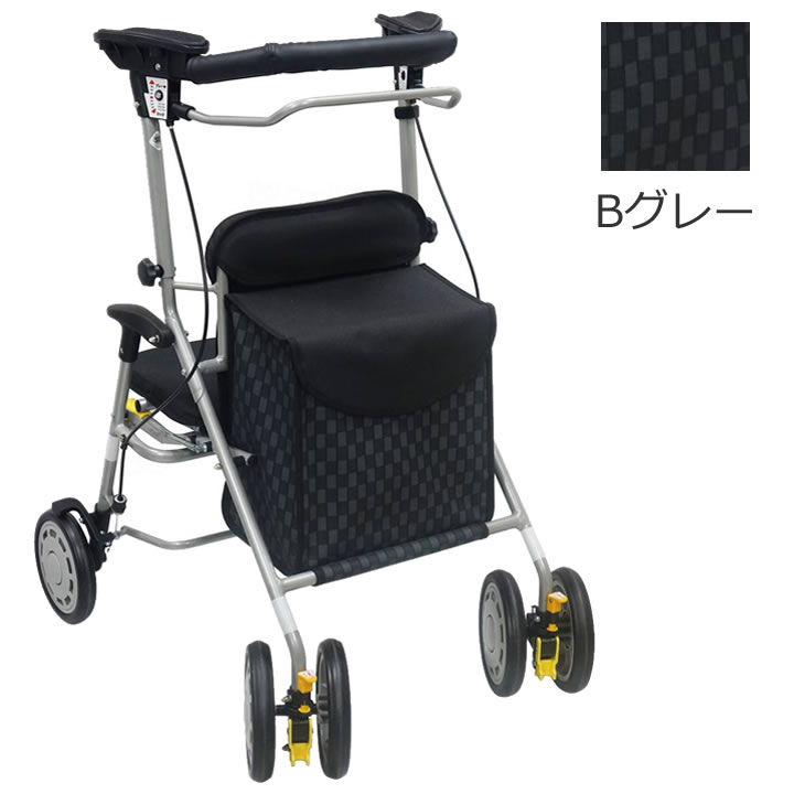 NEW! あると便利なコンパクト車いすの新商品法人様宛送料無料キャンペーンお届け先のお名前かお届け先のご住所に法人様のお名前が入っている場合は送料無料となります。お届け先が法人様の場合でも、法人様のお名前が入力されていない場合には送料無料対象外となりますのでご注意ください。※ご注文時は送料が加算されておりますが、弊社にてご注文確認後に送料無料に訂正させて頂きます。※北海道・沖縄・離島は法人様宛の場合でも別途送料が追加になります。すべてがワイドな安心ゆったり設計 Point1.背の高い人にも最適 ハンドル高が約93〜102cm(4段階調節)、幅約60.5cmとワイドサイズで、背の高い方にも最適です。 Point2.両輪ブレーキ&2WAYブレーキ ブレーキ・ストッパの一体型。 レバーを握るとブレーキ、押し下げると駐車用ストッパがかかります。 Point3.大きめのバッグ バッグは高さ約33cm。 大きめのペットボトルも入れることができます。 大容量バッグで、お買い物などにも便利です。(載荷重:8kg) Point4.ワンタッチ座面でちょっとした休憩にも便利 座面は上げ下げするだけのワンタッチ操作となっておりますので、簡単に操作していただけます。 Point5.簡単折りたたみ 折りたたみレバーをあげるだけで簡単にたためます。 折りたたんだ状態でも自立します。 開閉用ロックレバー付きでカートが折りたたんだ状態で固定され、持ち運びに便利です。 Point6.3WAYキャスター キャスターは、固定(0度)、左右各60度、フリー(360度)の3種類の設定が可能です。 ご利用者様の使いやすい角度をお選びいただけます。 ○傘受け付き仕様表サイズ約H93〜102×W60.5×D71cm重量約8.5kg車輪径前輪 約18cm/後輪 約18cm詳細折りたたみサイズ:約H100.5×W60.5×D43cmハンドル高:約93〜102cm高さ調節:4段階(ピッチサイズ 約3cm)座面高:約43cm座面サイズ:約W38×D28cmバッグサイズ:約H33×W32.5×D20cm(外寸)バッグ載荷重:8kg最大使用者体重:80kg規格1台 ケンクル(kenkul)では他にも多くのシルバーカーをご用意しています 軽量で持ち運びに便利お散歩にも最適大きめの袋やかごが付いてお買い物に便利幅が広めでしっかりとした安定感がある体重を支えながら移動できる