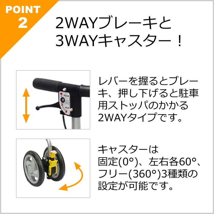 NEW! あると便利なコンパクト車いすの新商品横幅が最もスリムなシルバーカー 駅やスーパーなどの狭い通路も快適に歩行できます 1.2WAYブレーキと3WAYキャスター レバーを握るとブレーキ、押し下げると駐車用ストッパのかかる2WAYタイプのブレーキ。 キャスターは、固定(0°)/左右各60°/フリー(360°)の3種類の設定が可能です。 2.座面付き 駐車用ストッパを下げて車輪を固定し、座面を倒して座ることができます。 ちょっとした休憩やバスの待ち時間などに便利です。 3.折りたたみコンパクト コンパクトに折りたため、折りたたんだ状態で自立するので、持ち運びにも大変便利です。 4.たっぷり収納、スマートに持ち運び 収納量たっぷり!!内部に形状保持版付きで、バッグがゆがみにくくなっています。 バッグのふた部分にはチャック付きのポケットもあり、小物の収納に便利です。 【サイズ】 使用時サイズ:約H77.5〜86.5×W48×D60cm 収納時サイズ:約H69×W48×D33cm ハンドル高:約77.5〜86.5cm(ピッチサイズ 約3cm) 座面高:約44cm 座面サイズ:約W31×26cm タイヤ直径:前輪 約14.5cm/後輪 約14.5cm 重量:約4.9kg 最大利用者体重:75kg バッグサイズ:約H28×W27×D15cm(外寸) バッグ載荷重:5kg 【材質】 本体:アルミ(一部スチール)(粉体塗装) タイヤ:EVA ホイル:PP バッグ:ポリエステル ケンクル(kenkul)では他にも多くのシルバーカーをご用意しています 軽量で持ち運びに便利お散歩にも最適大きめの袋やかごが付いてお買い物に便利幅が広めでしっかりとした安定感がある体重を支えながら移動できる