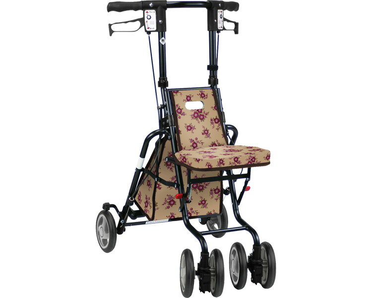 ・歩きやすさを追求したデザイン、脚の運びもらくらくです。 ・手元2WAYブレーキの連動タイプ。どちらかのブレーキで両後輪の操作ができます。●サイズ/幅48.5×奥行59×高さ86〜92(3段階/3cm)cm、折りたたみ時:奥行35×高さ65cm、座面:幅27.5×奥行20cm、座面高:44cm ●車輪サイズ/前輪14.5×後輪14.5cm ●重さ/4.9kg ●材質/フレーム:アルミパイプ(粉体塗装)、バッグ:ポリエステル ●バッグ容量/約5L ●積載荷重/2kg ●最大使用者体重/80kg ●標準機能/折りたたみ、2WAYキャスター(左右60°、固定)、手元ブレーキ、駐車ブレーキ、座面、杖・傘立て ●生産国/ベトナム ●SGマーク取得商品 ●ケース入数/2・歩きやすさを追求したデザイン、脚の運びもらくらくです。 ・手元2WAYブレーキの連動タイプ。どちらかのブレーキで両後輪の操作ができます。●サイズ/幅48.5×奥行59×高さ86〜92(3段階/3cm)cm、折りたたみ時:奥行35×高さ65cm、座面:幅27.5×奥行20cm、座面高:44cm ●車輪サイズ/前輪14.5×後輪14.5cm ●重さ/4.9kg ●材質/フレーム:アルミパイプ(粉体塗装)、バッグ:ポリエステル ●バッグ容量/約5L ●積載荷重/2kg ●最大使用者体重/80kg ●標準機能/折りたたみ、2WAYキャスター(左右60°、固定)、手元ブレーキ、駐車ブレーキ、座面、杖・傘立て ●生産国/ベトナム ●SGマーク取得商品 ●ケース入数/2