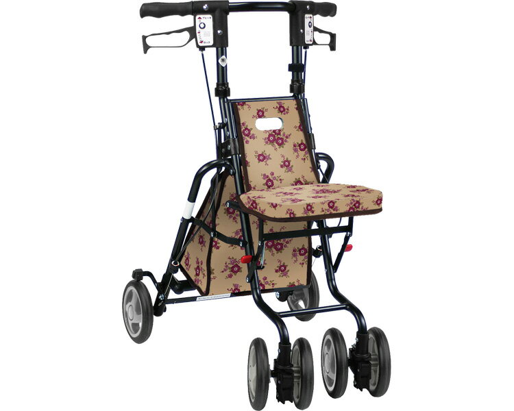 ・歩きやすさを追求したデザイン、脚の運びもらくらくです。 ・手元2WAYブレーキの連動タイプ。どちらかのブレーキで両後輪の操作ができます。●サイズ/幅48.5×奥行59×高さ79〜85(3段階/3cm)cm、折りたたみ時:奥行35×高さ65cm、座面:幅27.5×奥行20cm、座面高:44cm ●車輪サイズ/前輪14.5×後輪14.5cm ●重さ/4.8kg ●材質/フレーム:アルミパイプ(粉体塗装)、バッグ:ポリエステル ●バッグ容量/約5L ●積載荷重/2kg ●最大使用者体重/80kg ●標準機能/折りたたみ、2WAYキャスター(左右60°、固定)、手元ブレーキ、駐車ブレーキ、座面、杖・傘立て ●生産国/ベトナム ●SGマーク取得商品 ●ケース入数/2・歩きやすさを追求したデザイン、脚の運びもらくらくです。 ・手元2WAYブレーキの連動タイプ。どちらかのブレーキで両後輪の操作ができます。●サイズ/幅48.5×奥行59×高さ79〜85(3段階/3cm)cm、折りたたみ時:奥行35×高さ65cm、座面:幅27.5×奥行20cm、座面高:44cm ●車輪サイズ/前輪14.5×後輪14.5cm ●重さ/4.8kg ●材質/フレーム:アルミパイプ(粉体塗装)、バッグ:ポリエステル ●バッグ容量/約5L ●積載荷重/2kg ●最大使用者体重/80kg ●標準機能/折りたたみ、2WAYキャスター(左右60°、固定)、手元ブレーキ、駐車ブレーキ、座面、杖・傘立て ●生産国/ベトナム ●SGマーク取得商品 ●ケース入数/2