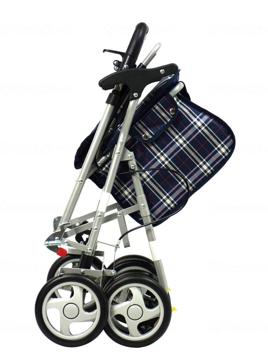 サイズ・重量 重量約6kg コメント この製品は、自立歩行できる方がより安定して歩行できるよう補助的に使用するものです。 カゴ載せ可能でスリムなボックスカー ○駐車用ストッパ 操作しやすいハンドブレーキ&駐車用ストッパ ○折りたたみ可能 折りたたんでも自立しますので収納に便利 ○前輪2WAYキャスター 前輪2WAYキャスター付(固定・120度)で方向転換もスムーズ 座面に買い物カゴを載せることができます。 バッグ載荷重:10kg 足元ラクラク設計 ハンドル高さ調節:高さ調節5段階(ピッチサイズ 約3cm) 前輪2WAYキャスター:“固定(0度)”と“方向転換もスムーズな左右各60度の回転”とを選べます。 ハンドストッパ付:駐車時の後輪のロックを手元で行えます。 ハンドブレーキ付:坂道やとっさの場合にもスピードを制御できて安心 折りたたんでコンパクト:折りたたむと小さくなり持ち運びや、収納に便利 傘受け付:傘や杖を収納できて便利です。 特許登録済 コンパクト性:○ 収納性:◎ 安定性:◎ (◎特に適しています。○適しています。) ●車幅が広く安定性が良い。また、車輪の大きいものは、段差などが乗り越えやすい。 ●座幅が広く座り心地が抜群。 ●座面下に大きな収納スペースがありお買い物などに便利。 材質・原材料 <材質> 本体部/アルミパイプ(粉体塗装) タイヤ/EVA(硬質発泡車輪) ホイル/PP バッグ/綿・PVC・ビニールレザー 規格詳細 使用時サイズ:約H84〜96×W47.5×D61cm 収納時サイズ:約H77×W47.5×D34cm 座面高:約47.5cm 座面サイズ:約W33×D28cm タイヤ直径:前輪/約17cm 後輪/約17cm バッグサイズ:約H27×W32×D21cm(外寸) 最大使用者体重100kgウェルファンオリジナルカラーサイズ・重量 重量約6kg コメント この製品は、自立歩行できる方がより安定して歩行できるよう補助的に使用するものです。 カゴ載せ可能でスリムなボックスカー ○駐車用ストッパ 操作しやすいハンドブレーキ&駐車用ストッパ ○折りたたみ可能 折りたたんでも自立しますので収納に便利 ○前輪2WAYキャスター 前輪2WAYキャスター付(固定・120度)で方向転換もスムーズ 座面に買い物カゴを載せることができます。 バッグ載荷重:10kg 足元ラクラク設計 ハンドル高さ調節:高さ調節5段階(ピッチサイズ 約3cm) 前輪2WAYキャスター:“固定(0度)”と“方向転換もスムーズな左右各60度の回転”とを選べます。 ハンドストッパ付:駐車時の後輪のロックを手元で行えます。 ハンドブレーキ付:坂道やとっさの場合にもスピードを制御できて安心 折りたたんでコンパクト:折りたたむと小さくなり持ち運びや、収納に便利 傘受け付:傘や杖を収納できて便利です。 特許登録済 コンパクト性:○ 収納性:◎ 安定性:◎ (◎特に適しています。○適しています。) ●車幅が広く安定性が良い。また、車輪の大きいものは、段差などが乗り越えやすい。 ●座幅が広く座り心地が抜群。 ●座面下に大きな収納スペースがありお買い物などに便利。 材質・原材料 <材質> 本体部/アルミパイプ(粉体塗装) タイヤ/EVA(硬質発泡車輪) ホイル/PP バッグ/綿・PVC・ビニールレザー 規格詳細 使用時サイズ:約H84〜96×W47.5×D61cm 収納時サイズ:約H77×W47.5×D34cm 座面高:約47.5cm 座面サイズ:約W33×D28cm タイヤ直径:前輪/約17cm 後輪/約17cm バッグサイズ:約H27×W32×D21cm(外寸) 最大使用者体重100kgウェルファンオリジナルカラー