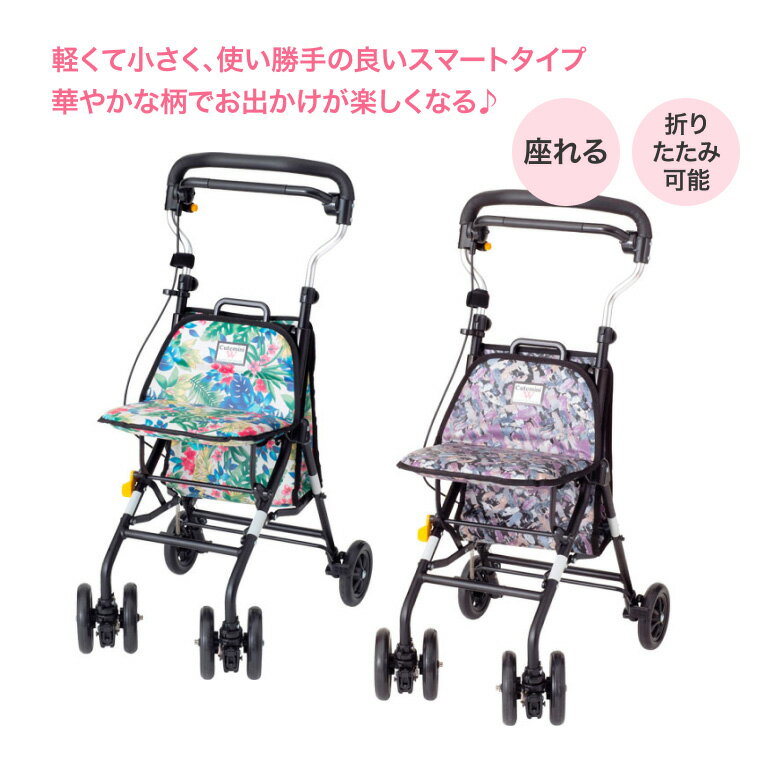 商品名 : ウィズワン シルバーカー コンパクトタイプ キュートミニW │ シルバーカー 介護用品 歩行サポート 手押し車 高齢者 花柄 シニア オシャレ シルバーカート お散歩 カート 折り畳み SGマーク取得商品 軽い 軽量 スマート 操作簡単 手元ブレーキ