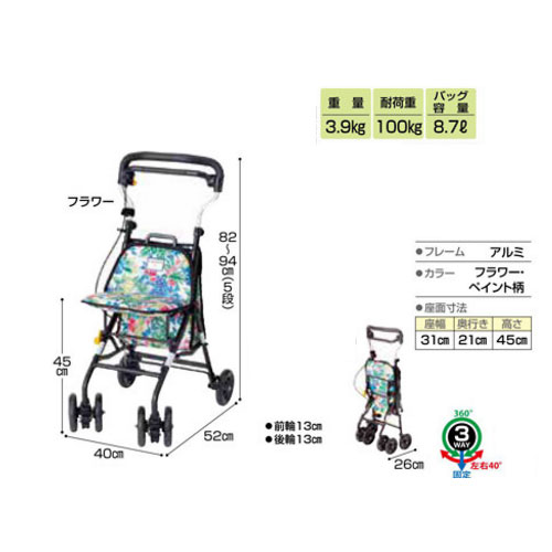商品名 : キュートミニW CM-FL フラワー ウィズワン コンパクトタイプ シルバーカー ショッピングカート 介護用品 シニア向け 高齢者